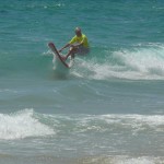 Held from the 21st-24th of October at Currumbin, a whole crew of Victorian SUP riders travelled north to compete in the 2013 National SUP Titles. Phil Trigger was one of those SUP riders, competing in both the over 40 and over 50 surfing events. Despite missing the Surfing VIC team selection event earlier in the year, Phil was invited to surf in the event – showing his growing reputation in the Victorian SUP scene. He placed equal 9th in both divisions, narrowly missing a semi-final berth in the over 40s… a countback ruling him out after his 4th heat of the day. I thought I should ask him for an insight into his “Move of the event” award…