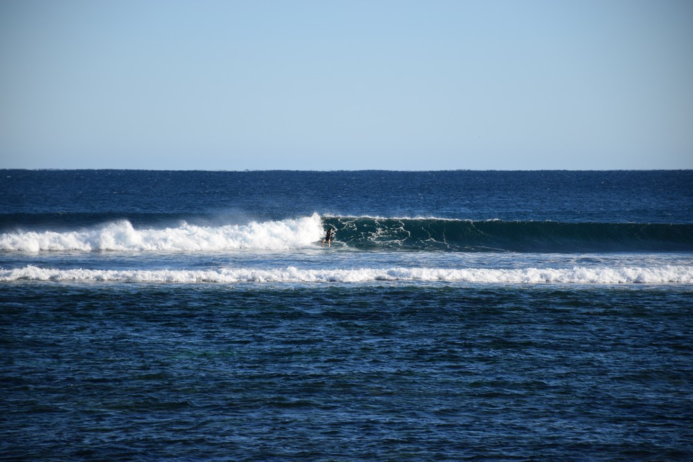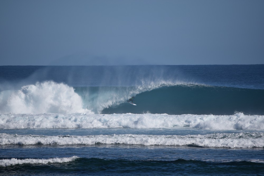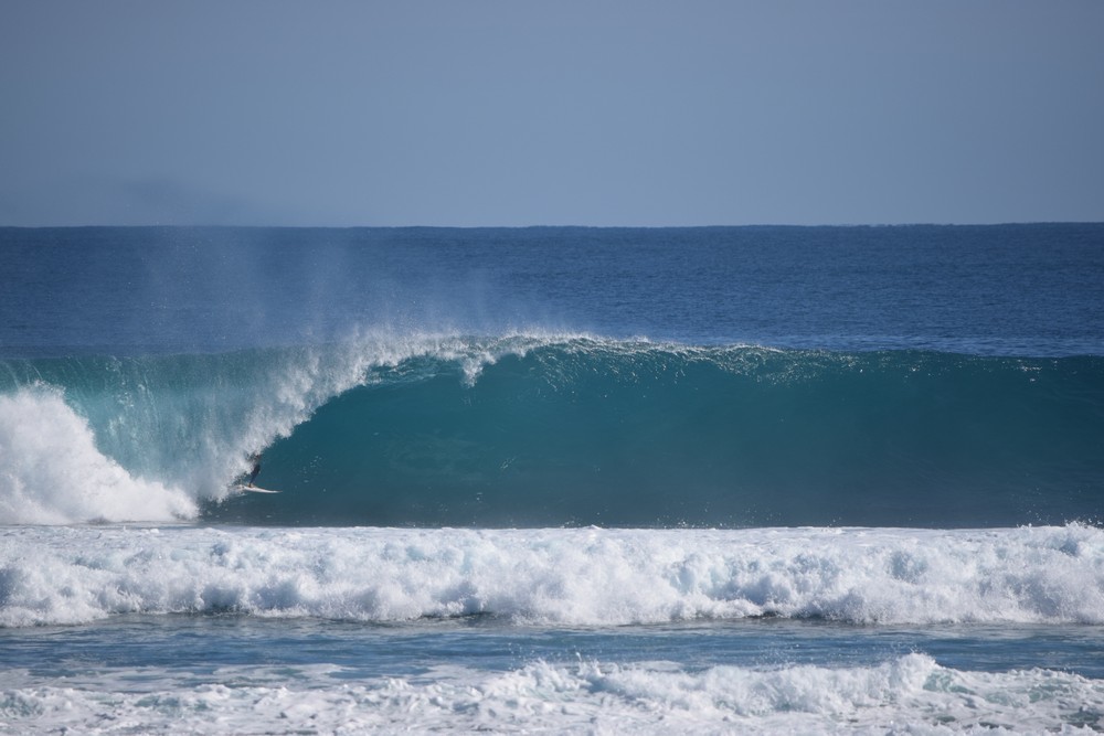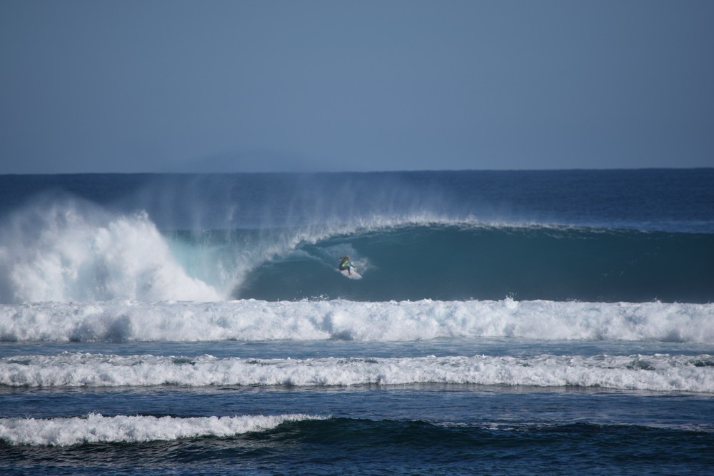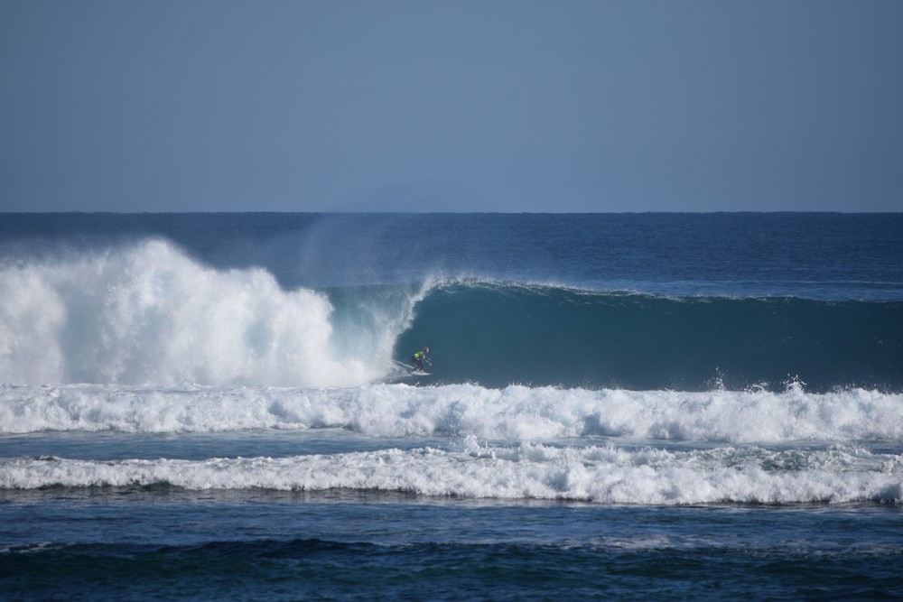 The new swell started rolling in early on Friday the 26th of June with sets up to 12 ft at Tombstones and even bigger down at Midges. I had never seen it ridden before but T-Ray told me guys had towed in on this ultra extreme part of the reef. We were fortunate to watch two lone surfers on boards around 8ft 6 surf a couple of 15 ft freight train monsters not dissimilar to Cloud break at that size.