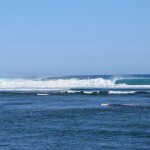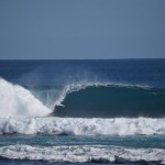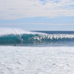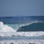 Moving up the reef a group of 25 surfers including Dave Macaulay and daughters Laura and Bronte were having a Barrel feast, while at Tombstones 25 to 30 warriors were huddled closely together and taking turns on the 1st couple of waves in each set. If you can make the vertical drop you’re in for the ride of your life. The later waves draw too much water off the reef and even the most experienced riders were paddling backwards on these.