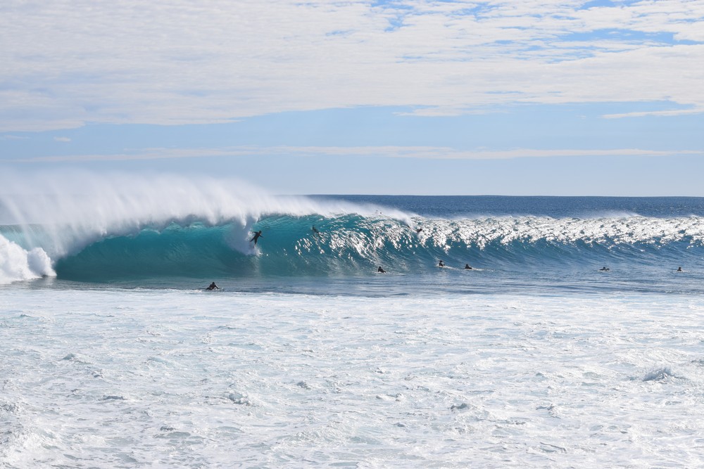 Cocky ventured out on my 6ft 4 and was lucky to sit in the line up with Tony Ray learning from one of the best big wave riders Australia has produced. Tony’s advice was to sit 30 to 40 meters wider of the pack where one would catch a dozen A plus waves compared to riding just 3 or 4 triple A’s from the cliff hanger drop. There is very good cause for the main break to be called Tombstones and its a bonus if you can hold your breath for a few minutes. Most of the guys out there were on their big guns 6ft 8 to 7ft and even longer for the older crew.