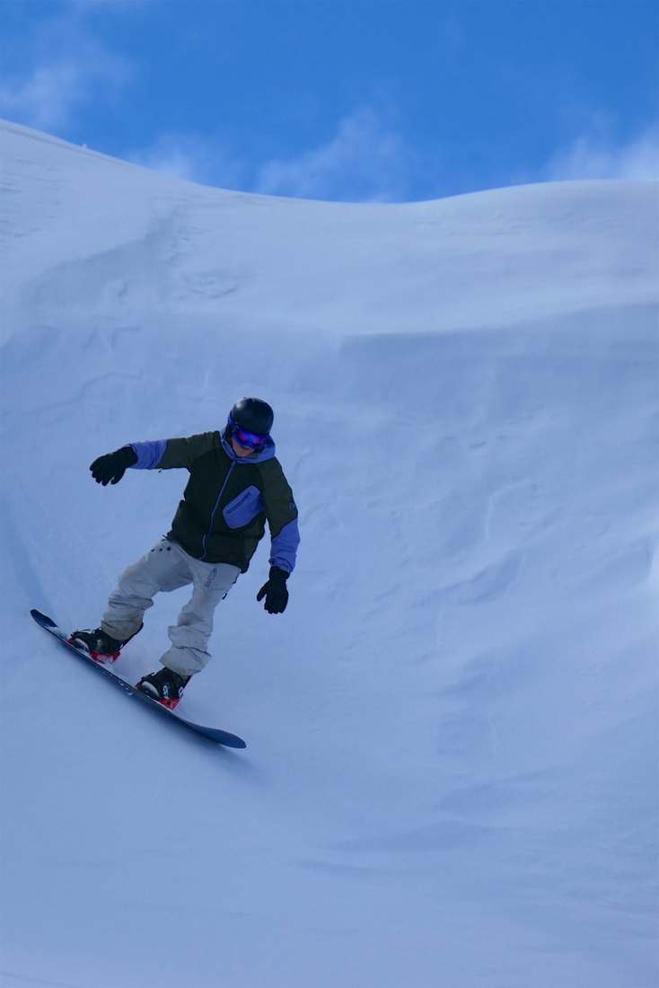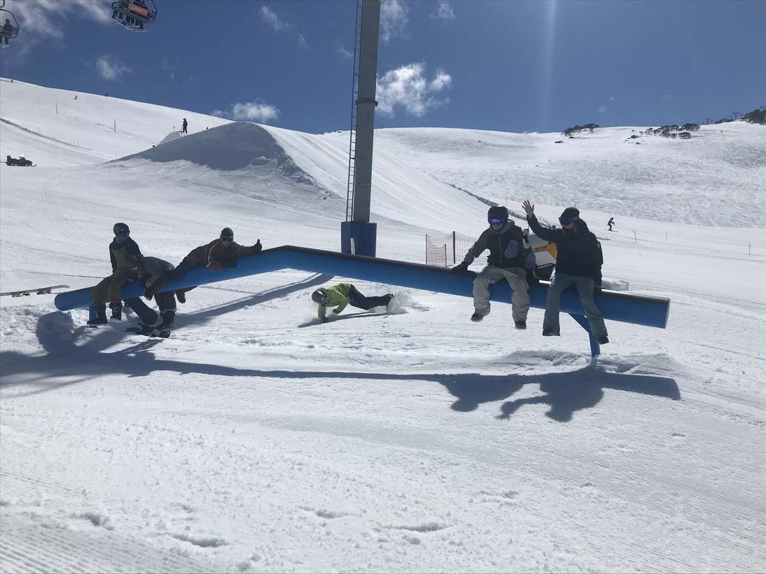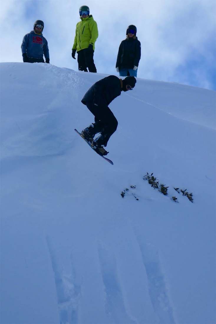 With the conditions still being a classic blue bird our second morning after a few fun warm up laps entailed a Burton Australia Not So Serious Snow Comp which demanded teamwork, plenty of imagination and a good level of fitness to be able to complete a series of 8 tasks located at all points of the compass in a time frame of 2 hours. We were split into four teams of 8 competing for a Steve Lee BackCountry Tour and you guessed it Jonny and Triggs just happened to be on the winning team.