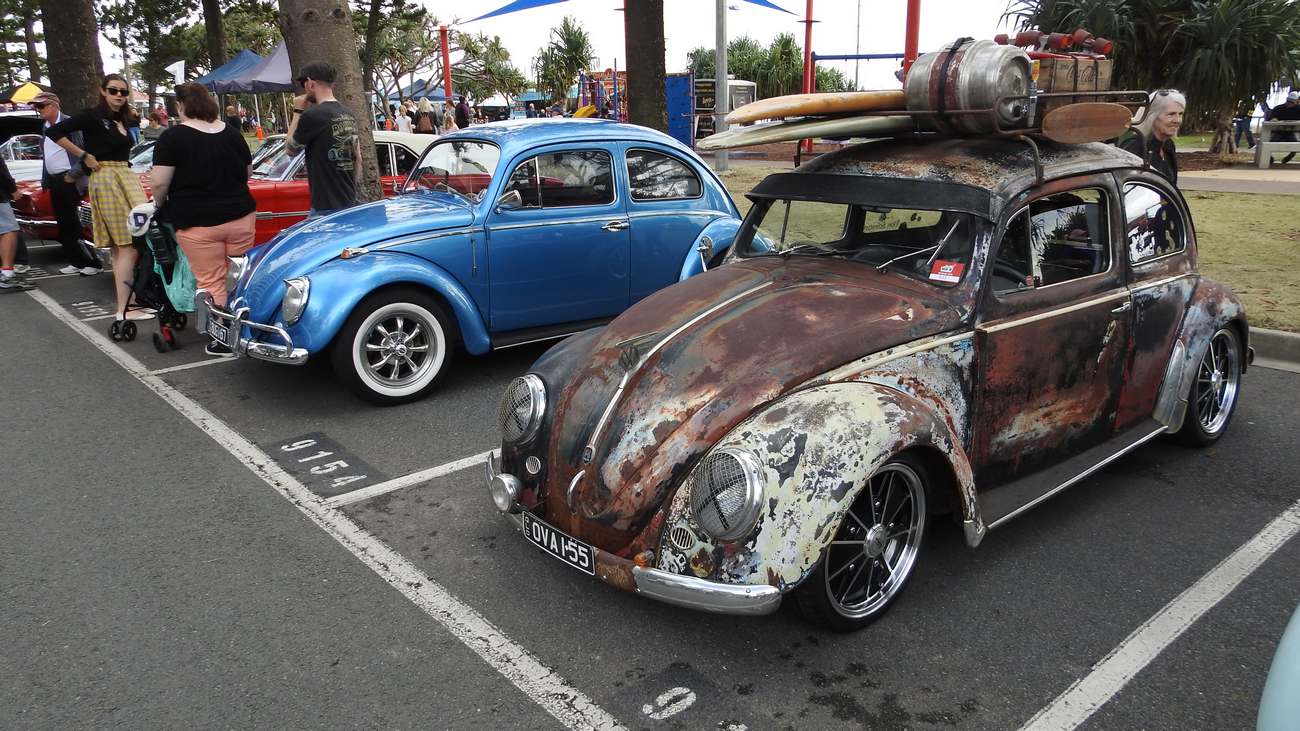 The other interesting shot is the Beatle with all the old surf gear on the roof.