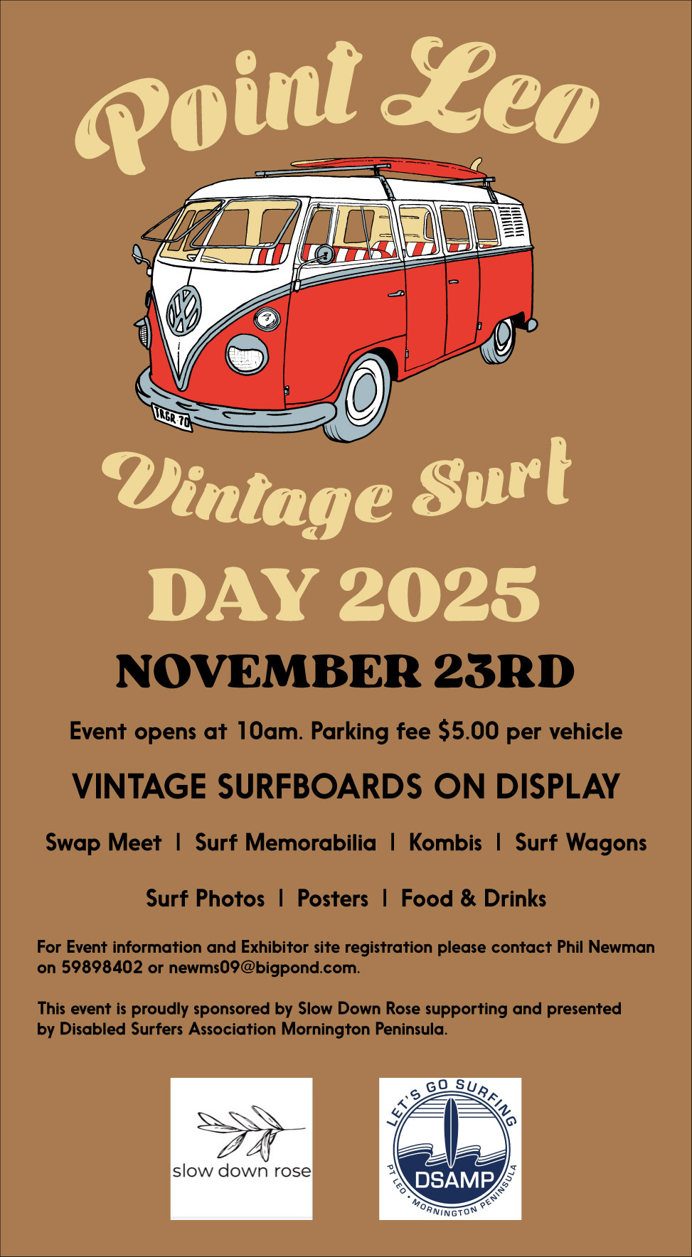 We've got a number of exhibitors booked in for this years Vintage Surf Day and we want to see some more. I've you are a collector of surfboards or surf memorabilia, it doesn't matter how big or small the collection, now is the time to show it off and connect with the local surf community.
