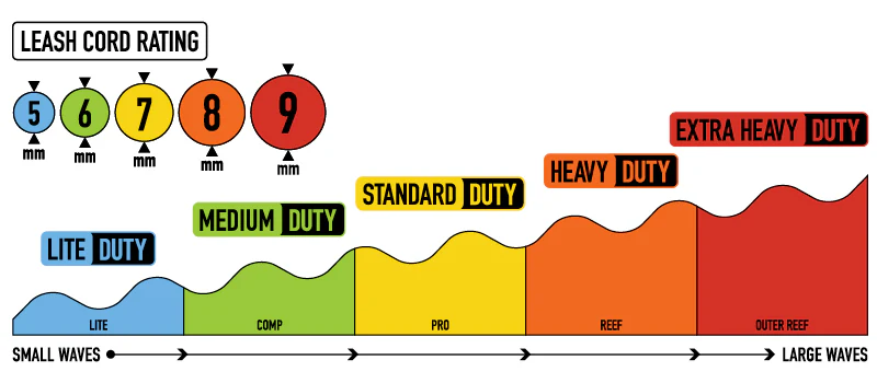 This is a STANDARD DUTYÂ 7mm cord. All-round leash rated for MEDIUM to LARGE WAVES.